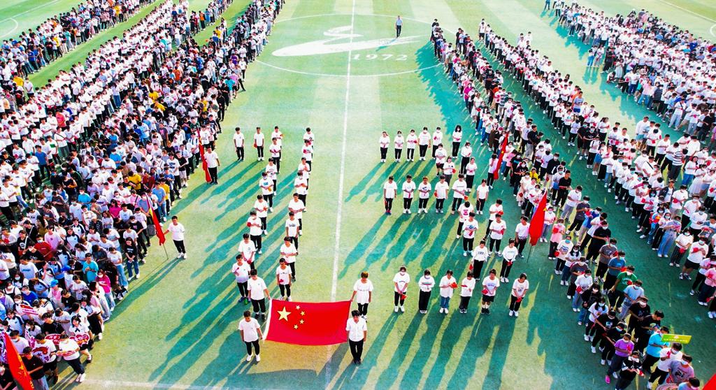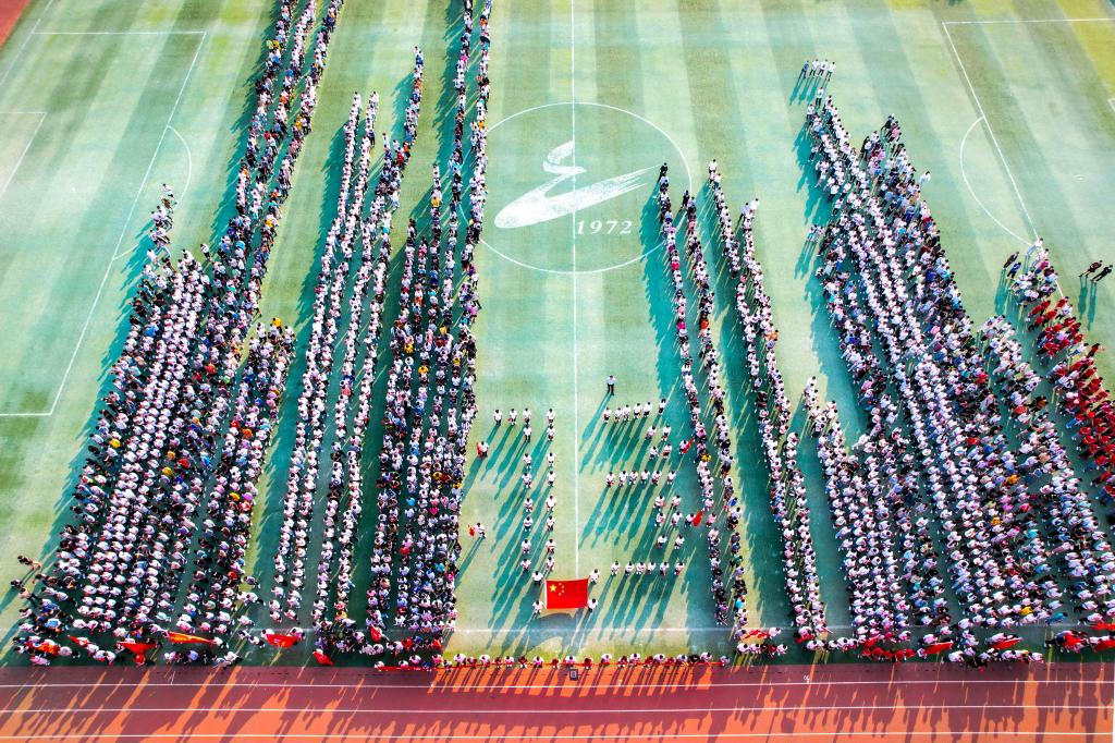 英国365集团网站新生代表73人排列成了一个巨大的“73”,挥舞着鲜艳的五星红旗,象征祖国历经73载,愈发繁荣富强。