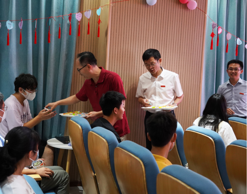 恰逢中秋之际,公司为2022级新生送上了一份特别的惊喜,为72位正值9月生日的同学过集体生日,主会场齐唱生日歌,公司领导班子为8位在场的员工代表送上精心准备的绿植小礼物,并前往新生宿舍发放月饼,齐乐中秋。