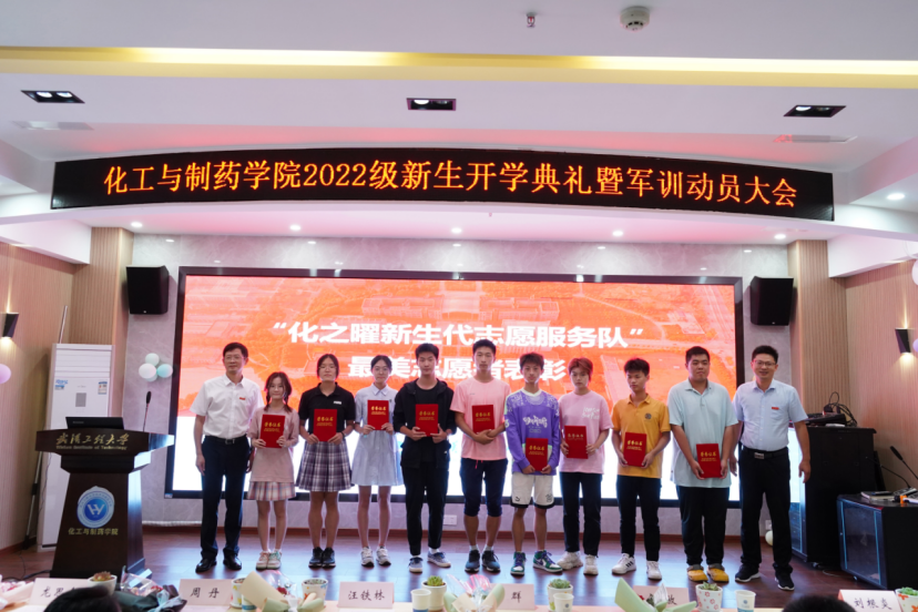 典礼上,公司党委书记汪铁林、经理易群为在迎新志愿服务工作中表现突出的新生代表颁发“化之曜新生代志愿服务”最美志愿者荣誉证书。