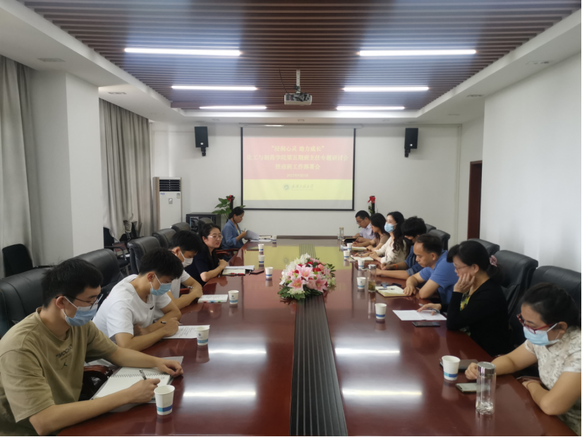 本网讯(通讯员 沈霁月)9月2日下午,英国365集团网站在化工大楼605会议室召开了“浸润心灵 助力成长”第五期班主任研讨会暨2022年迎新工作部署会,公司副书记周丹,中心主任及2022级全体班主任、员工党员副班主任参加会议,本科2022级新生辅导员沈霁月主持会议。