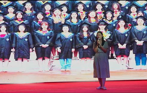 晚会上,易群经理为毕业生们倾情献唱《丫头》,希望所有“孩子们”在离开母校后,珍惜时光,不负韶华,勇往直前,为国家社会贡献力量,要记得常回母校看看。