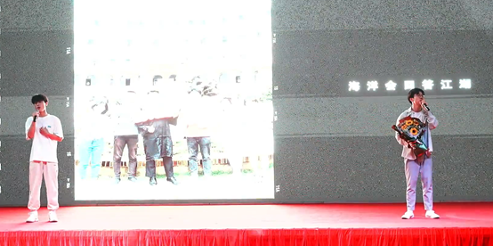 公司2018级毕业生辅导员季凯和毕业生宋子兴带来了歌曲演唱《入海》,祝福所有毕业生跃入人海,勇做浪花。