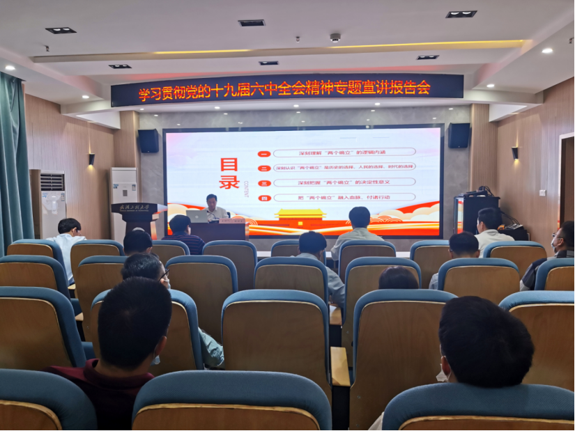 会上,程幼金围绕党的十九届六中全会精神,以《深刻理解“两个确立”的决定性意义 走好新时代赶考之路》为题,从“两个确立”的逻辑内涵入手,带领师生进一步深刻认识“两个确立”是历史的选择、人民的选择、时代的选择,阐释了“两个确立”的决定性意义。同时,程幼金结合公司事业发展实际,深入解读了如何把“两个确立”真正转化为做到“两个维护”的思想自觉、政治自觉、行动自觉,从坚定教师使命担当、扎根荆楚建设一流大学、坚守立德树人根本任务,为全体师生提出了明确的要求和奋斗的方向。