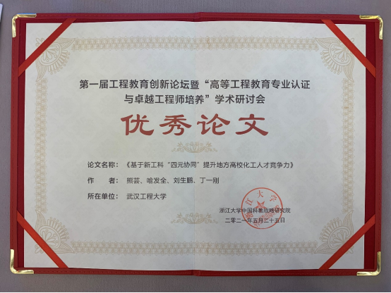 本次论坛暨学术研讨会面向全国征集优秀论文百余篇,经专家评审遴选优秀论文十篇,公司教师熊芸的投稿征文《基于新工科“四元协同”提升地方高校化工人才竞争力》被评选为优秀论文,并受邀作大会分会场报告交流。