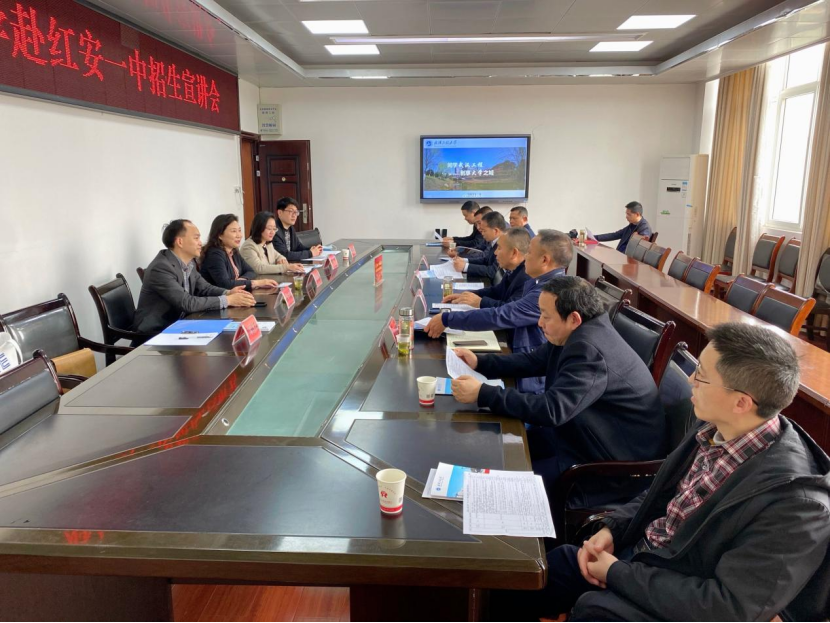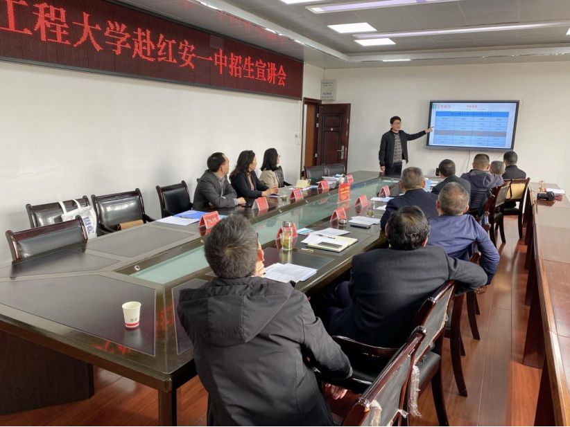 红安一中校领导对公司招生宣传队的到来表示热烈欢迎,并简要介绍了红安一中整体办学情况。徐伟伟、张盛涛分别就历年高考情况和本年度高三学情进行了分析介绍。
