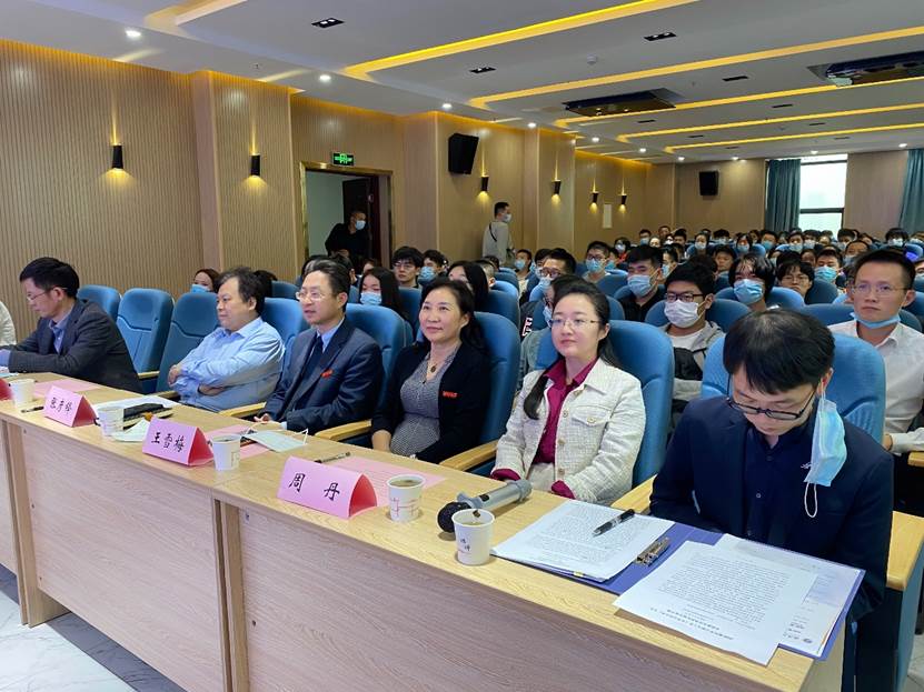 彭石玉教授具体讲解了中外合作办学项目中的课程安排、培养模式、团队队伍、国际化深造路径等在场师生比较关心的问题。第一届项目员工代表夏斯瑶进行全英文发言。
