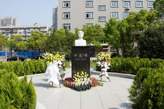 全体师生代表齐聚许志伟广场,怀着崇高的敬意、沉重的心情缅怀英雄许志伟。仪式开始,由许志伟党员示范班、许志伟志愿服务队员工代表为烈士敬献花篮并深深鞠躬,致以许志伟学长崇高的敬意。