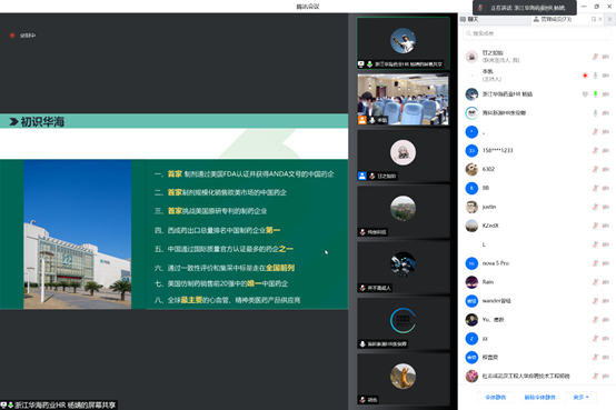 本次线上宣讲会利用腾讯会议平台,共邀请了化工生产、药物合成、工程设计等不同类型的九家企业开展宣讲,岗位需求达300余人,涵盖了化学工程、制药工程、药物制剂、材料化学等多个专业,切实满足了公司本科生、研究生的就业岗位需求。