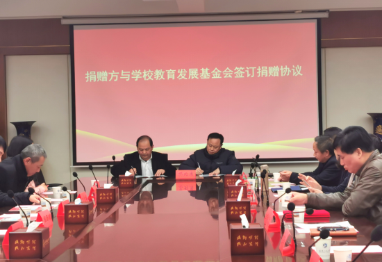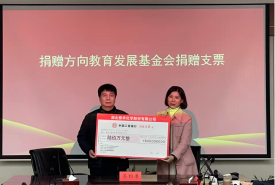 基金会秘书长邓新洲代表公司教育发展基金会与湖北振华化学股份有限公司董事长蔡再华签订了捐赠协议书。