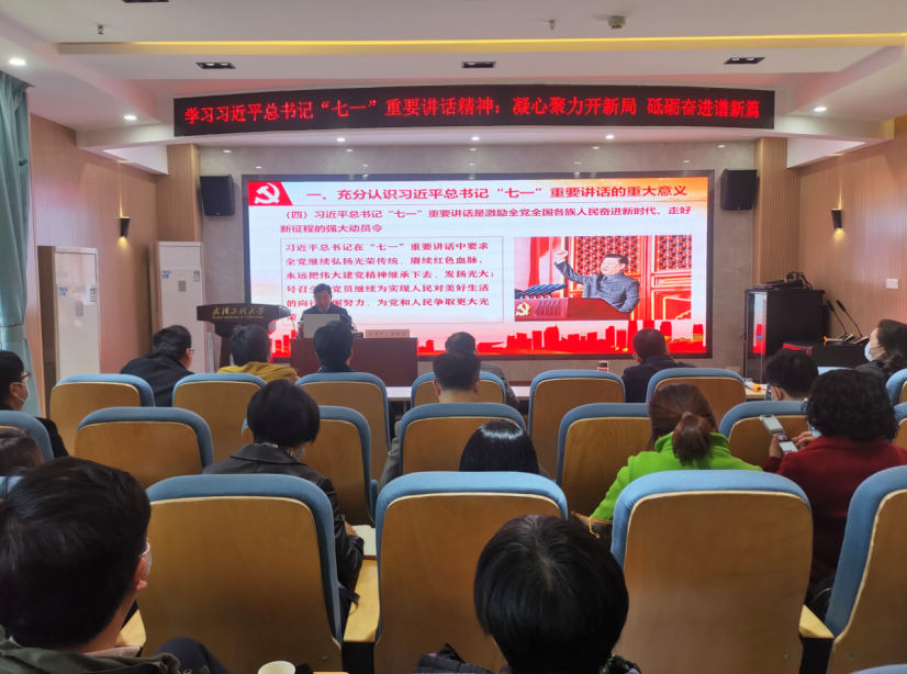 会上,程幼金围绕习近平总书记“七一”重要讲话精神,以《凝心聚力开新局 砥砺奋进谱新篇——为把工大全面建成特色鲜明的高水平教学研究型大学而努力奋斗》为题,从“七一”重要讲话精神的重大意义、主要内容、如何学习贯彻落实“七一”重要讲话精神等三个方面进行了深入剖析和延展解读,深刻阐释了党的“四个伟大成就”、“三个世界奇迹”、三个深刻改变“”以及以史为鉴开创未来的“九个必须”,高度概括了伟大的建党精神。同时,程幼金结合公司事业发展实际,深入解读了公司第三次党代会精神的核心要义,从做到“七个必须坚持”、认清新发展阶段公司发展面临的机遇和挑战、明确公司发展目标及战略步骤、遵循“一二三四五六”发展思路、狠抓落实“八个聚焦”,为全体师生提出了明确的要求和奋斗的方向。