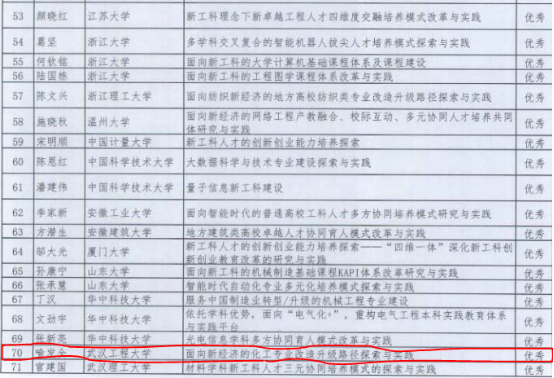本网讯(通讯员高友智)从教育部发布的文件《教育部办公厅关于公布首批新工科研究与实践项目结题验收结果的通知》(教高厅函〔2020〕12号)获悉,公司喻发全教授主持申报的“面向新经济的化工专业改造升级路径探索与实践”项目结题验收结果为“优秀”。