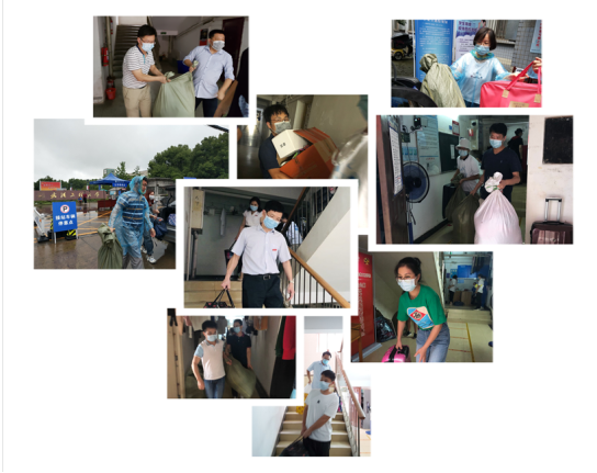返校期间,为解决毕业生行李多、搬运难的实际问题,公司组建了毕业生行李搬运教师志愿者队伍,多次往返宿舍、校门口、托运点,帮助毕业生搬运行李。公司党政领导班子带领老师们一同前往宿舍看望日久未见的同学们,叮嘱他们加强自我防护,协助毕业生打包行李物品,护航毕业生离校工作的“最后一公里”。