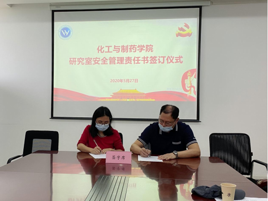 会上,公司党委书记王雪梅、副经理汪铁林(主持工作)与三级单位代表教工第三党支部书记葛燕丽、制药工程系主任古双喜签订党风廉政建设责任书。