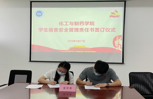 公司党委副书记周丹与辅导员代表黄钞华签订员工宿舍安全管理责任书。