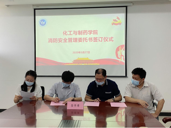 汪铁林与党委副书记周丹,副经理郭嘉、金放分别签订二级单位消防安全管理委托书。