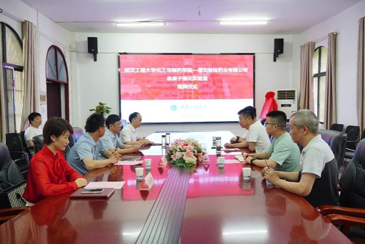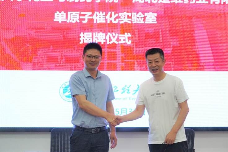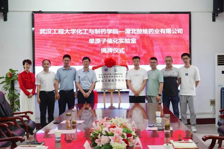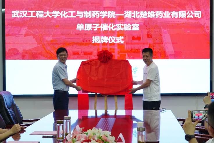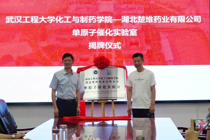 公司党委书记汪铁林、湖北楚维药业有限公司董事长熊进军代表双方为单原子催化实验室揭牌。