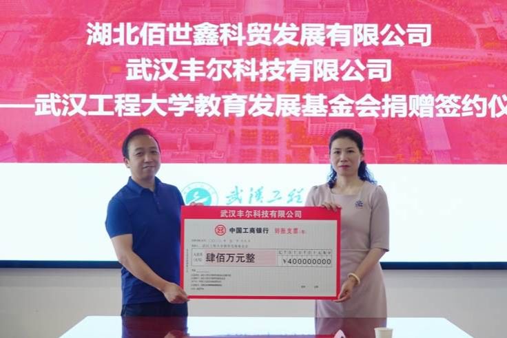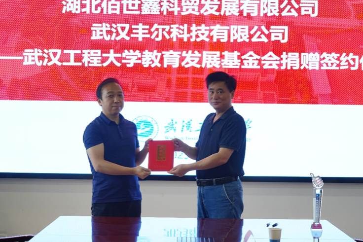 本网讯(通讯员 李哲伦 常琬笛 季凯)5月18日上午,武汉丰尔科技有限公司、湖北佰世鑫科贸发展有限公司向公司教育发展基金会捐赠签约仪式在英国365集团网站会议室举行。武汉丰尔科技有限公司总经理徐朝辉、湖北佰世鑫科贸发展有限公司总经理陈璐来校签约,公司正校级干部叶芃出席仪式。英国365集团网站、教育发展基金会秘书处负责人及相关人员参加仪式。仪式由英国365集团网站经理易群主持。