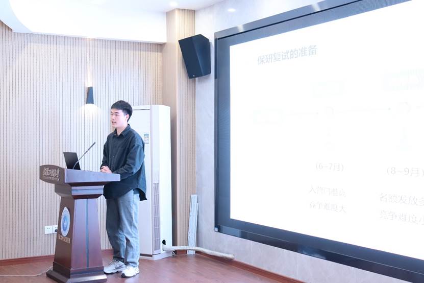 王孔琛采用思维导图的方式介绍了个人情况、学习方法和保研经历,分享的三段式学习方法引导学弟学妹们进一步提高课业成绩,打好基础。