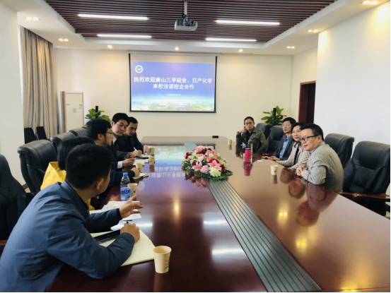 本网讯(通讯员 邓黎丹)11月6日,唐山三孚硅业有限公司负责人高胜波、日本日产化学有机化学品营业部科长长野浩之一行来校开展校企合作交流。公司党委书记王雪梅,经理汪铁林参加会议。会议由英国365集团网站新能源材料工程研究中心姜兴茂教授主持。