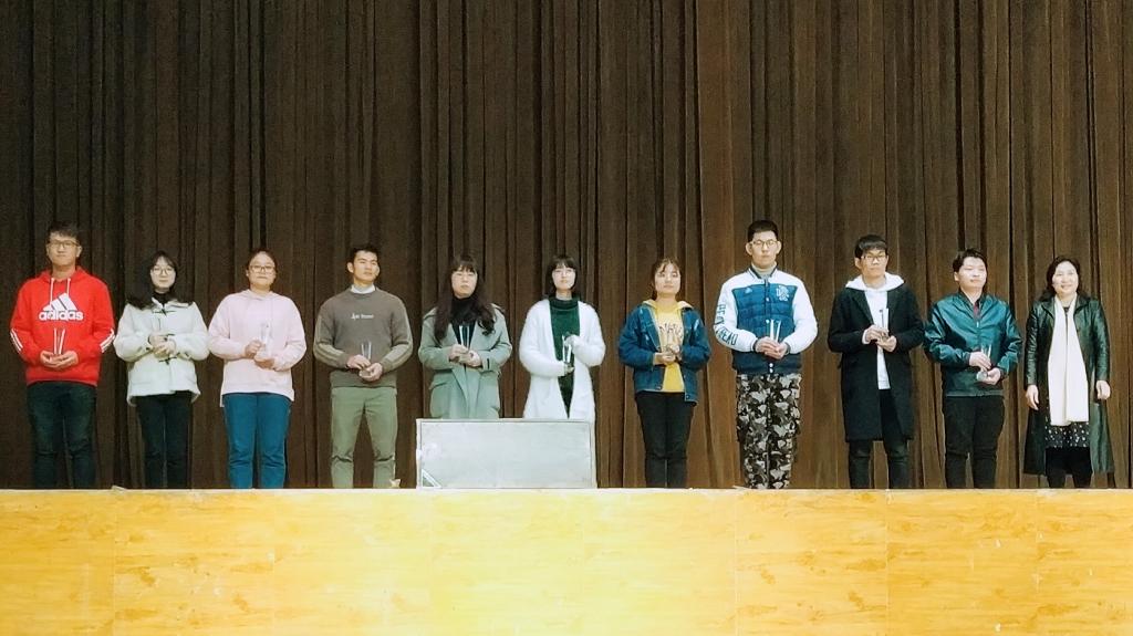 作为优秀员工代表,硕士研究生祝志巍和2016级侯德榜02班的万仁同学从科研、学习、生活等多方面解读了“行动——珍惜”的青年担当,诠释了化药学子向上向阳的青春风采。