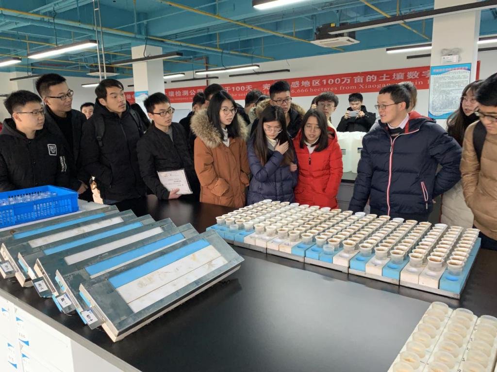 公司董事长王仁宗及主要部门负责人对师生一行的到来表示欢迎,带领参观矿石浮选工程技术研究中心,详细介绍公司的基本概况、业务体系、发展战略、行业概况等,重点阐述了“化肥缓/控释用木质素/腐殖酸/魔芋包膜材料生产技术”,并与员工展开了充分交流。