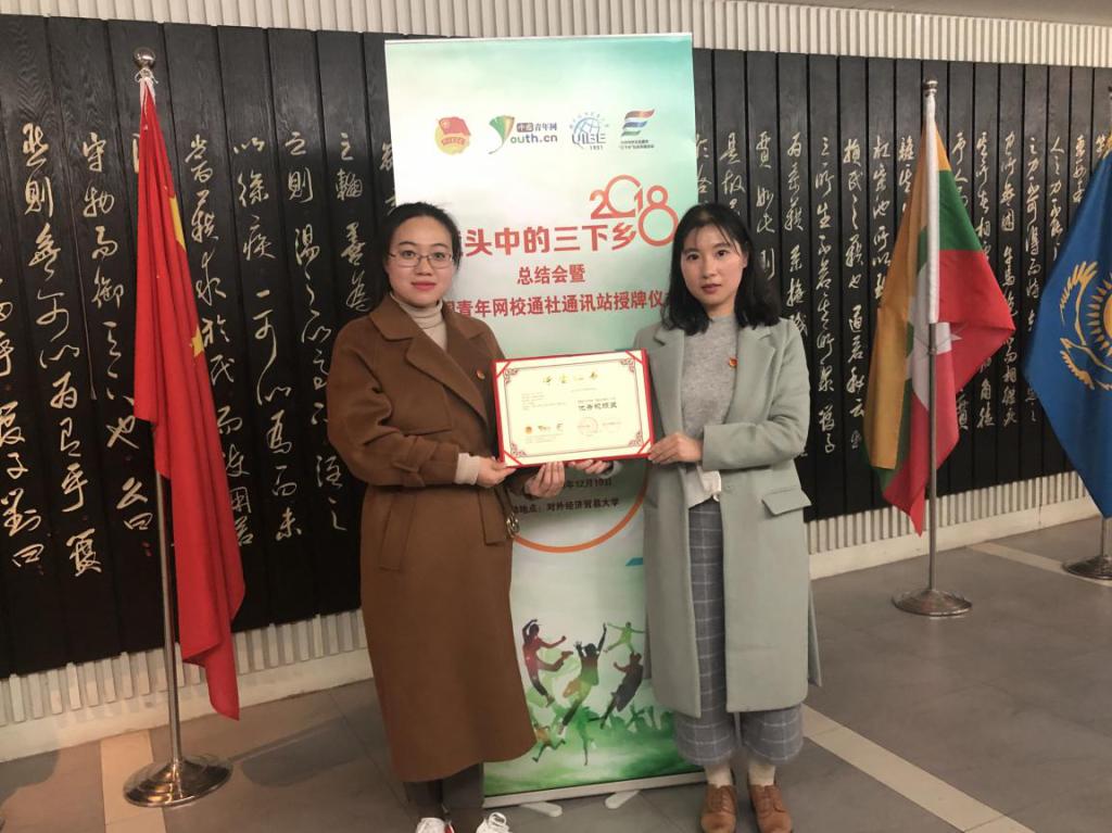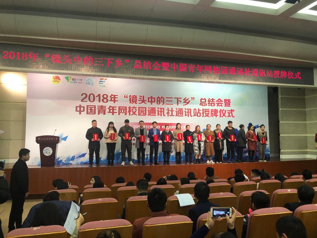 本讯网(通讯员李茜)12月19日下午,2018年“镜头中的三下乡”总结会暨中国青年网校园通讯社通讯站授牌仪式在北京对外经济贸易大学隆重举行。团中央青年发展部副部长刘钢,团中央青年发展部实践教育处处长柏贞尧,团中央网络影视中心党委委员、中国青年网副总裁、总经理金锐,对外经济贸易大学党委副书记文君等领导嘉宾,以及全国300余所高校的600余名师生代表参加本次活动。英国365集团网站“红船精神”实践团荣获2018年“镜头中的三下乡”优秀视频奖。