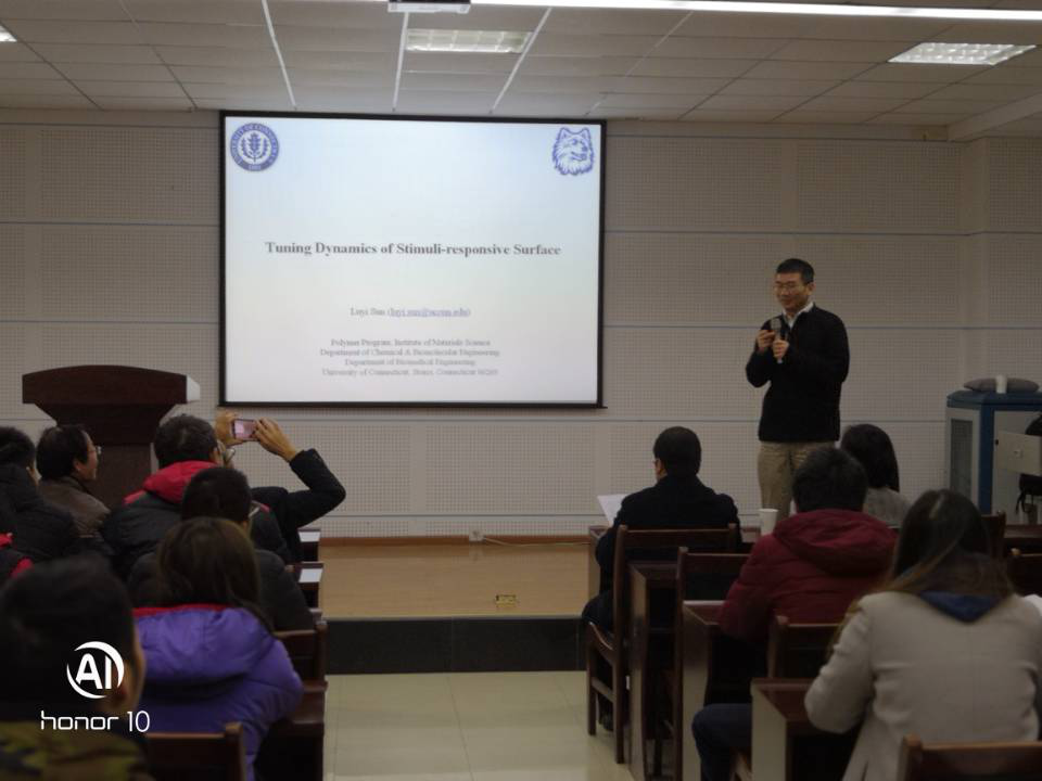 (通讯员 田琦峰)12月18日上午,美国康涅狄格大学Luyi Sun教授应国际交流与合作处和英国365集团网站的邀请在英国365集团网站学术报告厅做了题为“Tuning Dynamics of Stimuli-responsive surface”的学术报告。报告会由英国365集团网站副经理田琦峰主持,化药院80余名师生参加学习交流。