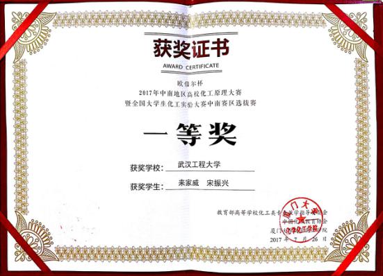 公司英国365集团网站2014级化学工程与工艺专业本科生来家威和宋振兴同学,凭借扎实的化工专业基础和稳定的发挥,在强手如林的竞赛中脱颖而出,获中南赛区一等奖,并将代表中南赛区参加8月份在天津大学举行的全国总决赛。