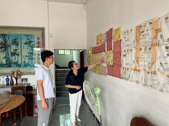 炎炎夏日,骄阳似火,家访一行人驱车两个小时来到2022级本科生小万家中。一进门,老师们就被屋内张贴满墙的奖状所吸引,众人仔细看完了张贴的各项荣誉,也对眼前腼腆、上进的小万有了进一步的了解。随后,老师们与小万父亲就员工在校学习情况和表现、思想动态、学业发展以及家庭情况等方面进行了深入交流,就小万及家人所关注的就业考研等问题进行了详细的解答,帮助小万进一步明晰生涯规划。周丹鼓励小万保持良好的学习状态,勇于克服困难,自强不息、刻苦学习,用知识改变自己的命运,成为全面发展的国家栋梁。“感谢公司老师们大热天来看望我们一家,孩子在公司我们放心!”家访结束后小万的父亲紧握住周丹的手不住的表示感谢,并表示后续会及时和公司老师交流,共同助力员工的成长和进步。
