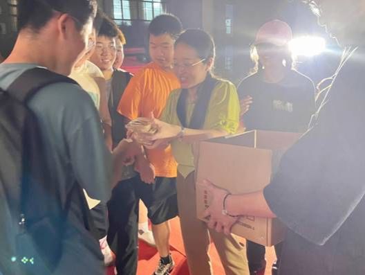 周丹、龙思会代表公司党委,向在场的2023级新生发放中秋月饼,为新生送去暖心的关怀和节日的祝福,希望同学们尽快适应老员工活,以饱满的热情和崭新的精神面貌迎接新学期,启航新征程。