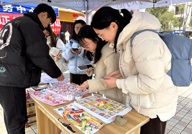 各式各样可爱的玩偶盲盒整齐摆放,吸引了众多同学的目光,纷纷参与其中,充满期待地抽取着属于自己的盲盒,抽到心仪的玩偶,同学们的脸上都洋溢着开心的笑容。