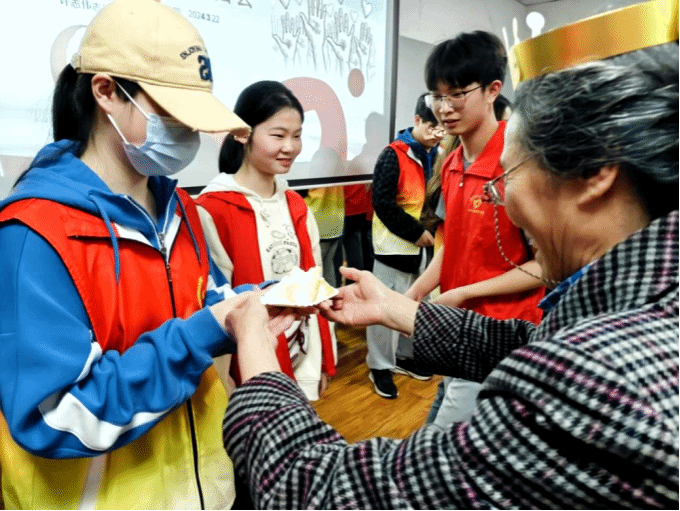 温暖相伴,同庆福寿安康。志愿者们为老人们齐唱《生日快乐歌》、一起吹蜡烛、切生日蛋糕,空气中弥漫着幸福的味道。老人们喜悦之情溢于言表,整个场面热闹而温馨。