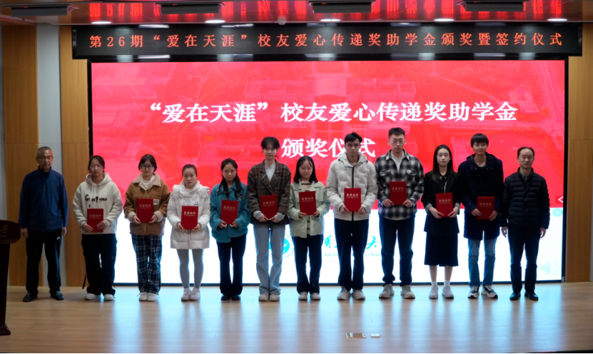 仪式上,李志旭代表公司党委、校行政对“爱在天涯”奖助学金设奖员工的一直以来为公司建设与人才培养做出的贡献表示衷心感谢,向此次获得奖助学金的员工表示祝贺。他表示,公司各项事业的发展进步离不开广大员工的倾情相助和鼎力支持,希望各位员工能常回家看看,一如既往地支持和关心公司发展,用员工智慧和员工力量共助公司谱写事业高质量发展的新篇章。他向获奖员工提出殷切期望:一是要坚定理想信念,树立报国之志,以习近平新时代中国特色社会主义思想立根铸魂、强基固本,厚植家国情怀,汲取精神伟力,用实际行动践行“请党放心,强国有我”的青春誓言。二是要常怀感恩之心,常举谢恩之行,将感恩之情牢记于心,将大爱之心薪火相传,让青春在奋斗与奉献中绽放绚丽光彩,以更加优秀的表现回报社会、回馈母校,不负员工们的厚望。三是要坚持自强不息,锤炼过硬本领,在所学专业领域深入钻研,以“勤为径”向“上”攀登,以“心作谷”向“下”扎根,聚焦内涵式发展,在勤学中扎实学识,在实践中锤炼本领,奋力书写挺膺担当的青春篇章。