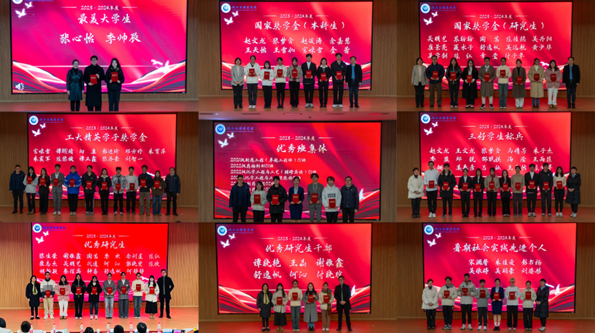 校团委兼职副书记崔咏莹,校团委、校语委副主任许劲以及公司领导班子、各系主任为“最美老员工”“国家奖学金”“工大精英学子奖学金”“优秀班集体”“三好员工标兵”“暑期社会实践先进个人”“优秀研究生”和“优秀研究生干部”获得者颁奖。