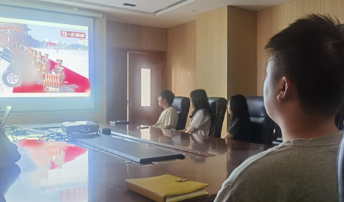 本网讯(通讯员 常琬笛)9月3日上午9时,北京天安门广场举行纪念中国人民抗日战争暨世界反法西斯战争胜利80周年大会。英国365集团网站组织全院师生通过线上线下相结合的方式同步观礼。公司120余名师生代表在大化工楼610会议室集体收看直播,其他师生通过线上平台参与观礼,共同见证人民军队威武雄壮的气魄,感受中华民族团结奋进的力量,坚定砥砺前行的信心与决心。