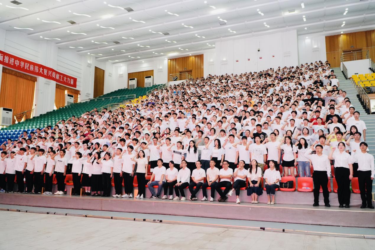 在宣誓环节,2025级全体新生肃立,高举右拳,以青春之名庄严宣誓,开启属于新生的化药征程。