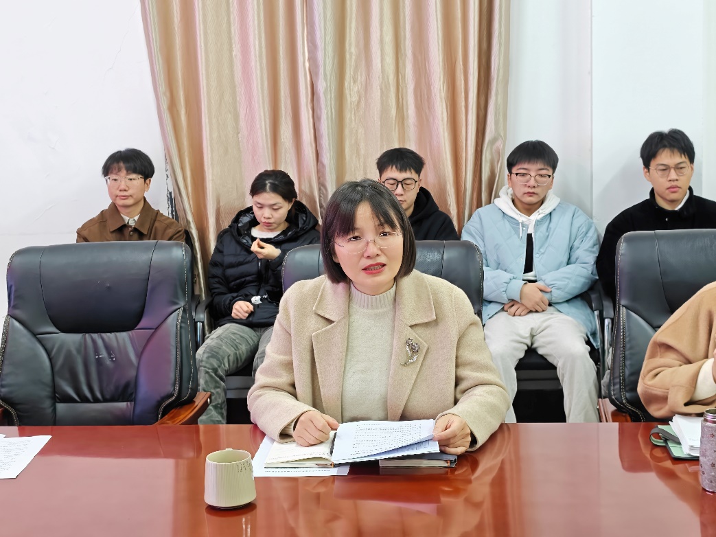 黄远鑫就离校手续办理及假期安全注意事项进行讲解。她详细说明了留校员工审批和网格化管理要求、住宿管理政策、交通出行建议、消防安全要点及金融、网络防诈提醒。