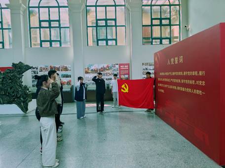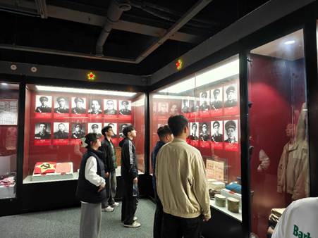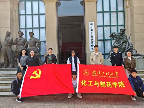 在湖北军民抗战博物馆,全体党员面对党旗庄严宣誓,重温入党誓词,铿锵誓言彰显初心使命。博物馆内,珍贵史料与实物展品生动再现了湖北军民在中国共产党领导下浴血奋战的光辉历程,师生们驻足凝视,深刻感悟革命先辈的家国情怀与无畏精神。随后,大家走进武汉抗战纪念园,深入了解武汉保卫战中军民同心、共御外侮的历史,从空军英烈陈怀民“与敌机同归于尽”的壮举到普通民众支援前线的故事,一段段历史让师生们体会到以血肉之躯筑长城的民族气节。