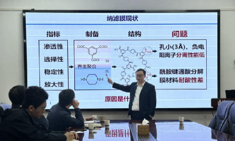 赵强教授以《强聚电解质离子分离膜》为题,围绕国家战略需求,阐明盐湖与废电池提锂对保障新能源供应链安全的重要意义,并针对高镁锂分离、耐强酸环境等关键难题,提出基于纳滤膜的阳离子分离技术方案。深入剖析传统聚酰胺纳滤膜的性能瓶颈,详细介绍了团队通过单体改性、结构设计与工艺优化实现提锂膜性能突破及规模化制备的创新成果。赵强教授还结合公司产品实践,分享了“宽严相济”的育人理念,勉励同学们勤奋治学、潜心科研。