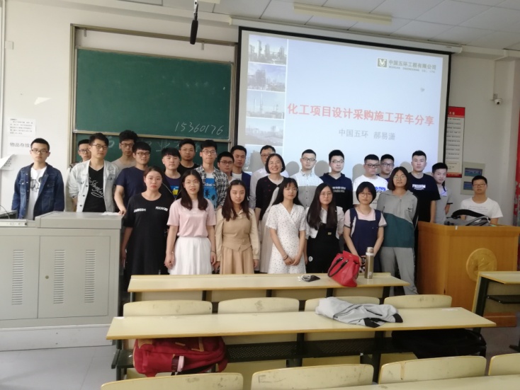 提问互动环节中,员工们踊跃提问,郝易潇高工均给予耐心细致地解答。报告会最后,郝易潇高工与15级化工卓越班的同学合影留恋,鼓励他们在化工设计的道路上坚持走下去。