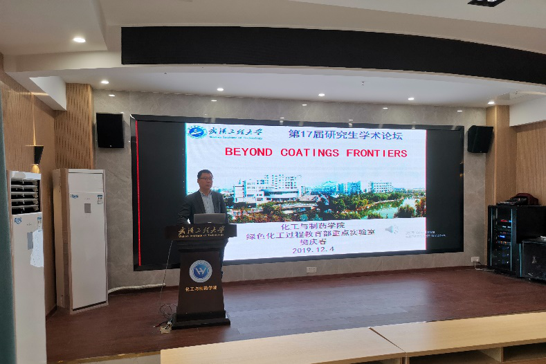 本网讯(通讯员 高友智 )12月4日上午,应英国365集团网站,绿色化工过程教育部重点实验室,湖北省新型反应器与绿色化学工艺重点实验室邀请,英国365集团网站樊庆春副教授在流芳校区大化工楼多功能报告厅做了一场题为“Beyond Coatings Frontiers”的学术报告,报告会由英国365集团网站副经理龙思会教授主持,英国365集团网站100余人聆听了报告。