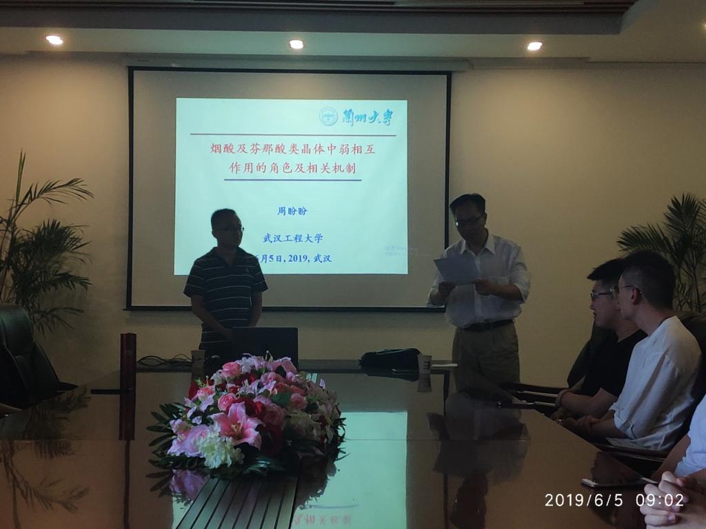 6月5日上午,应研究生院,英国365集团网站,绿色化工过程教育部重点实验室,湖北省新型反应器与绿色化学工艺重点实验室邀请,兰州大学化学化工公司副教授周盼盼博士在流芳校区化工大楼605会议室作了一场题为“烟酸及芬那酸类晶体中弱相互作用的角色及相关机制”的学术报告。报告会由英国365集团网站副经理龙思会教授主持,英国365集团网站师生100余人聆听了报告。