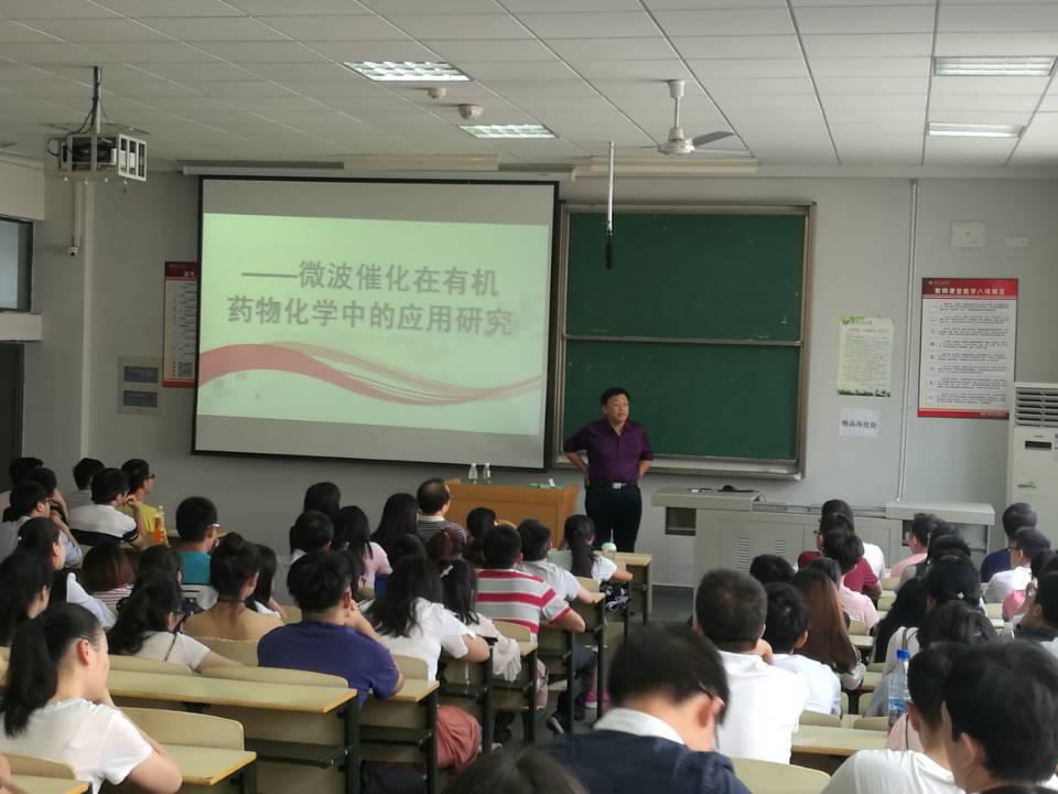 报告中,胡文祥教授对微波催化反应机理、微波催化系列仪器研制、微波催化在多个领域的应用研究、微波催化在药物合成中的应用研究以及微波催化反恐活性化合物的合成五个方面进行了深入分析。胡教授渊博的学识、风趣的语言给在场师生留下了深刻的印象。