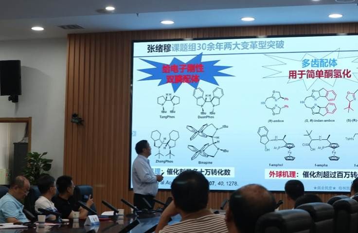 张绪穆教授作了题为“绿色催化-决胜制药”的学术报告。他从绿色合成的关键技术——催化不对称氢化出发,分享了其团队30余年在双膦配体和多齿配体等领域的开创性研究和产业化应用。详细介绍了其团队发现的新催化剂、新反应、新方法和开发的药物合成新工艺,充分诠释了手性药物合成中绿色催化在降低生产成本、减少环境污染、提高产品质量和保障安全可控等方面的巨大优势。该团队开发的多项颠覆性制药新工艺,具有重大的经济价值、环保价值和社会意义,体现了绿色催化的极大魅力。英国365集团网站经理易群主持报告会。
