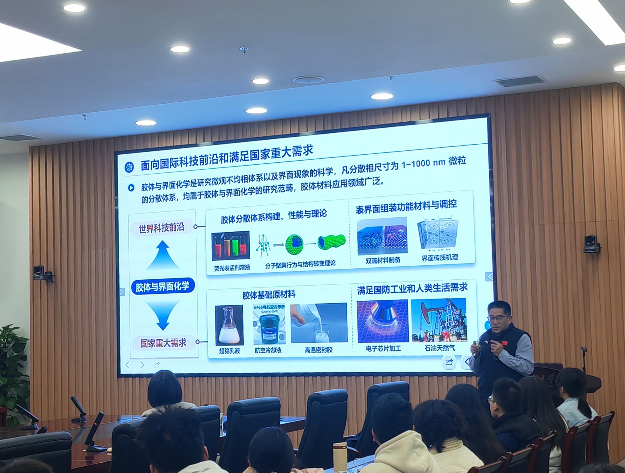 郝京诚教授以《表面活性剂应用基础研究与高纯产品产业化》为题,立足于国际科技前沿和国家重大战略需求,介绍了表面活性剂溶液组装理论以及超分子组装新方法,系统阐述了弱相互作用驱动组装机制,并结合生动的案例和课题组最新研究成果,详细介绍了表面活性剂和表界面组装方法在新材料合成、乳液催化等领域的关键作用,分享了在高纯表面活性剂产业化方面的研发成果,提出了高纯表面活性剂的应用前景与未来发展趋势。