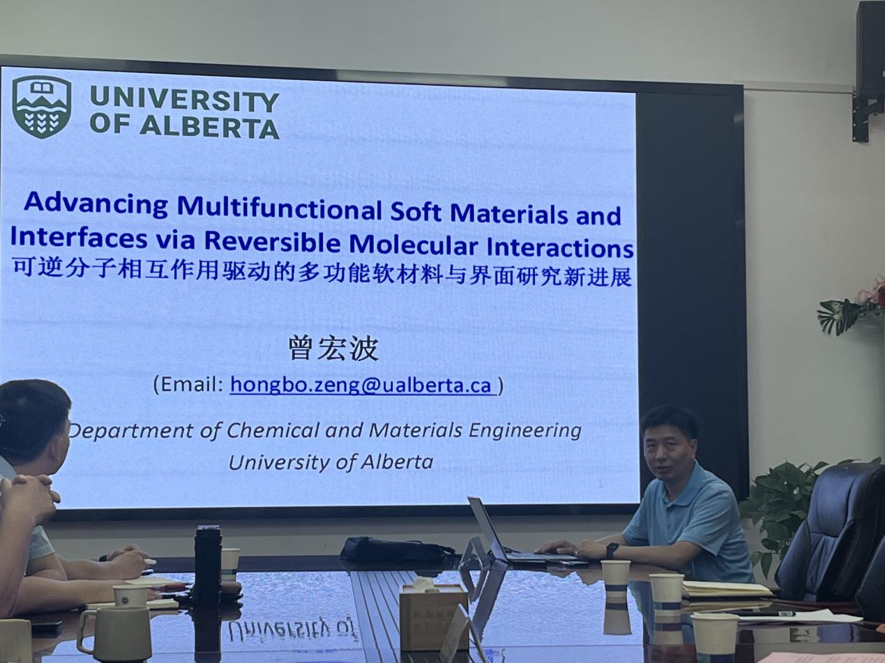 应课题组邀请,加拿大阿尔伯塔大学曾宏波院士于7月3日上午莅临英国365集团网站进行学术讲学----《Advancing Multifunctional Soft Materials and Interface via Reversible Molecular Interactions》(可逆分子相互作用驱动的多功能软材料与界面研究新进展)。